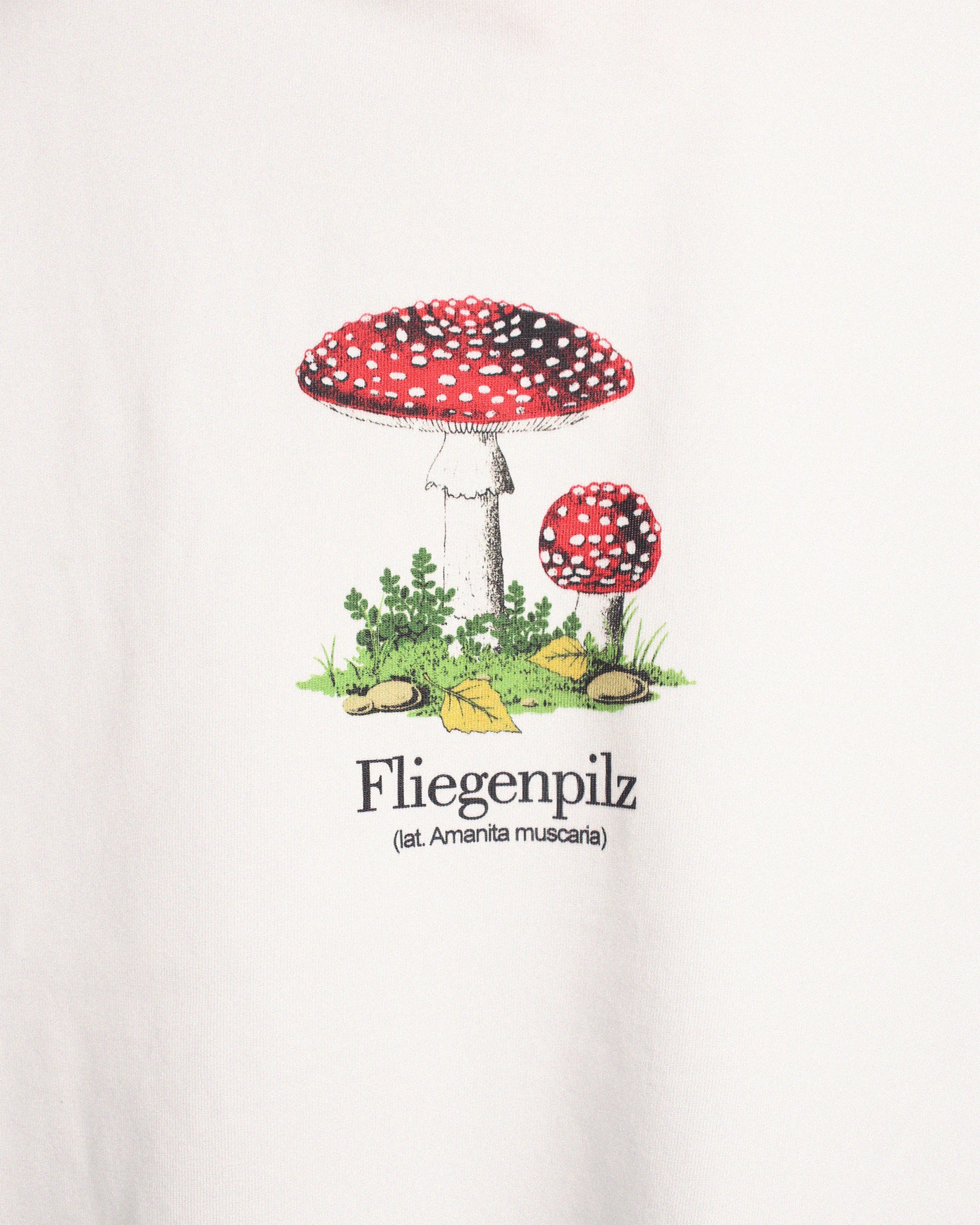 T-Shirt aus Bio-Baumwolle mit buntem Frontprint des Fliegenpilzes (lat. Amanita muscaria).